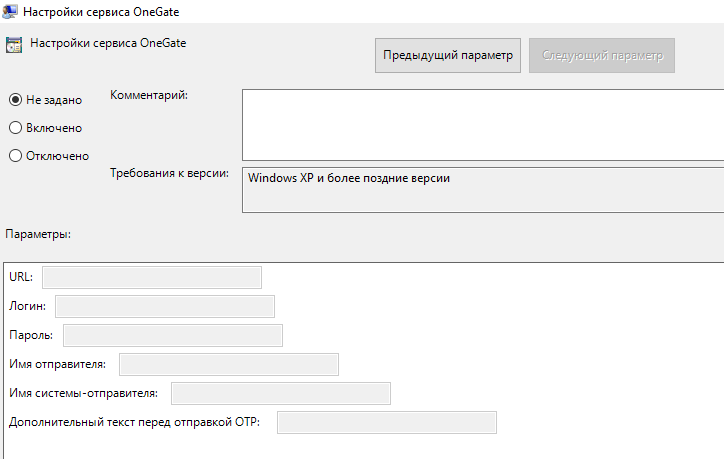 Политика применяется к серверам Indeed AM и определяет настройки для OneGate — сервиса отправки СМС: