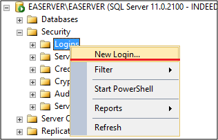 - Правой кнопкой мыши нажмите узел Logins.