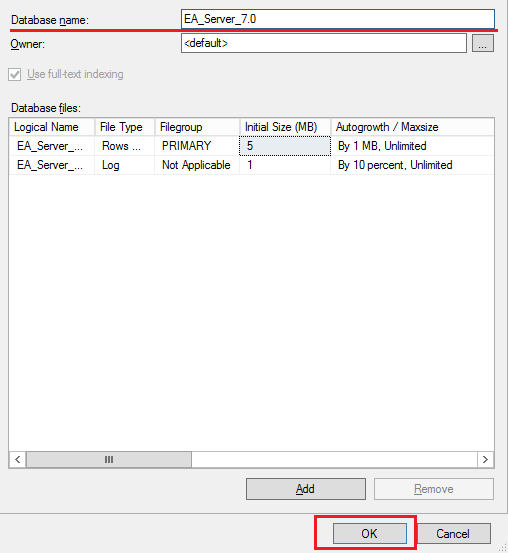 - В окне Create-Database выполните следующие действия: