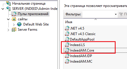 Выберите Пулы приложений→IndeedAM.Core (для Indeed AM Server)\Indeed.LS (для Indeed AM Log Server).