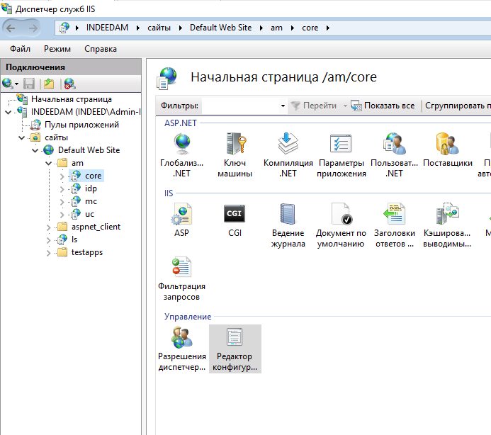 - Файл для компонента Indeed AM Server хранится в C:\inetpub\wwwroot\am\core\Web.config.