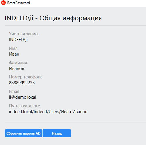 Indeed Reset Password (Reset Password) — утилита, предназначенная для сброса пароля пользователю с автоматической синхронизацией в системе Indeed Access Manager.