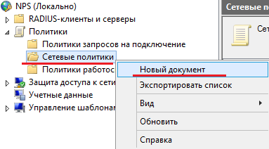 3. Нажмите правой кнопкой мыши Сетевые политики и выберите Новый документ.