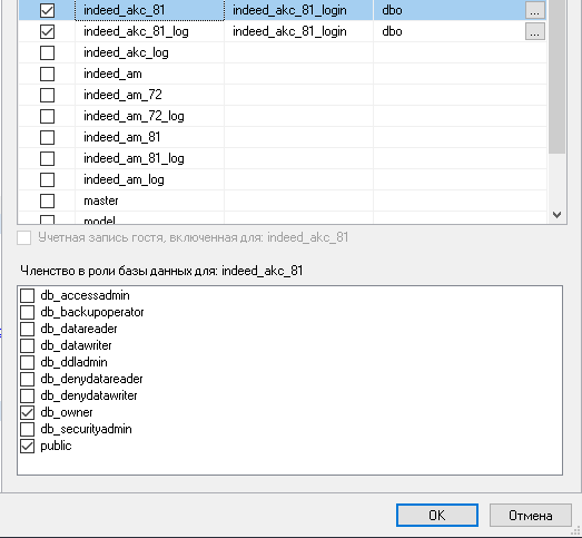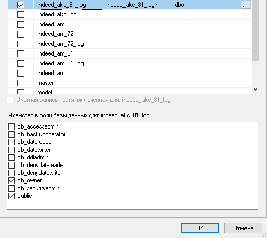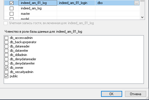 По завершении копирования укажите для новой БД логин сервера MS SQL с правами владельца.