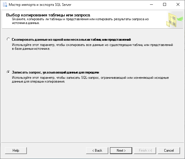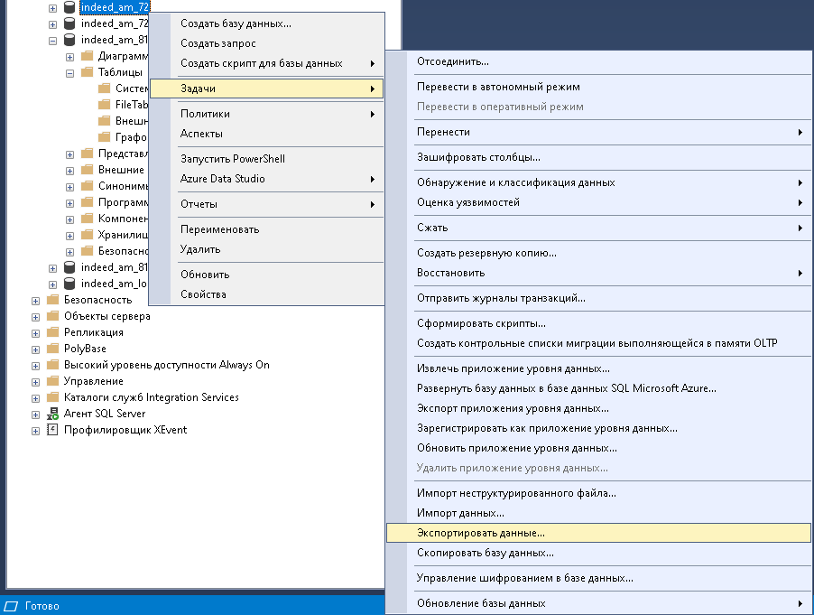 Используется инструментарий экспорта данных БД Export Wizard.