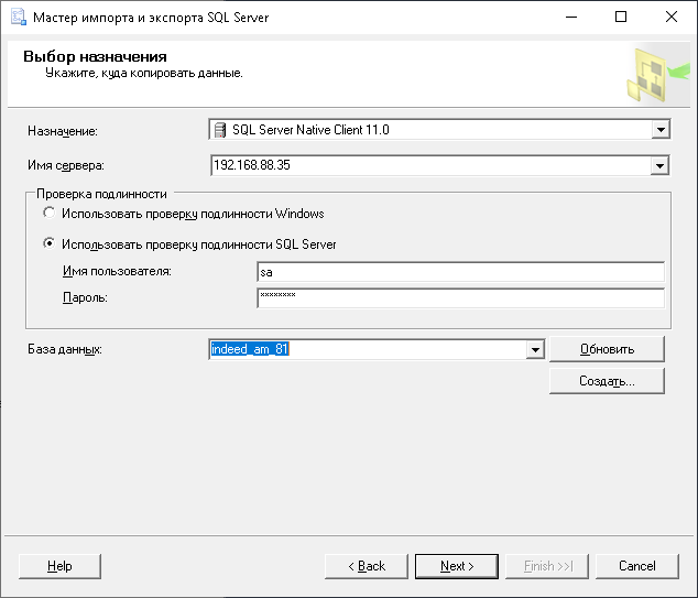 • Через мастер импорта и экспорта данных SQL Server. Подробнее можно узнать в статье Microsoft.