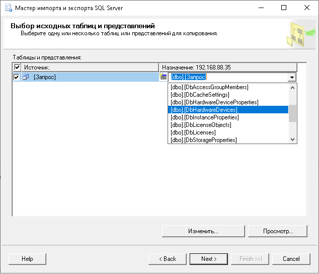 1. Далее выберите таблицы для экспорта и импорта.