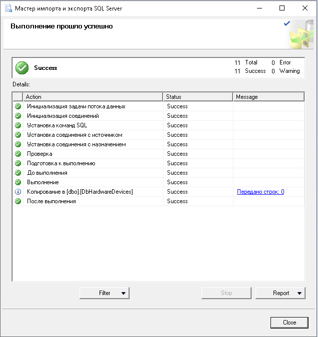 Все шаги повторяются для каждой мигрируемой таблицы.