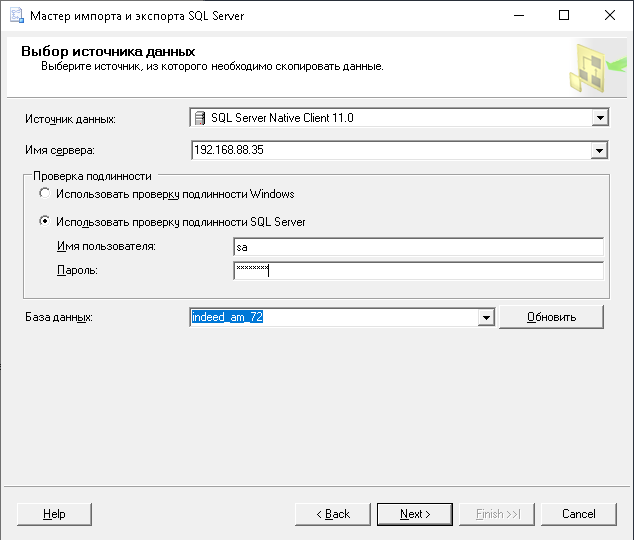 1. Запустите экспорт данных БД Export Wizard.