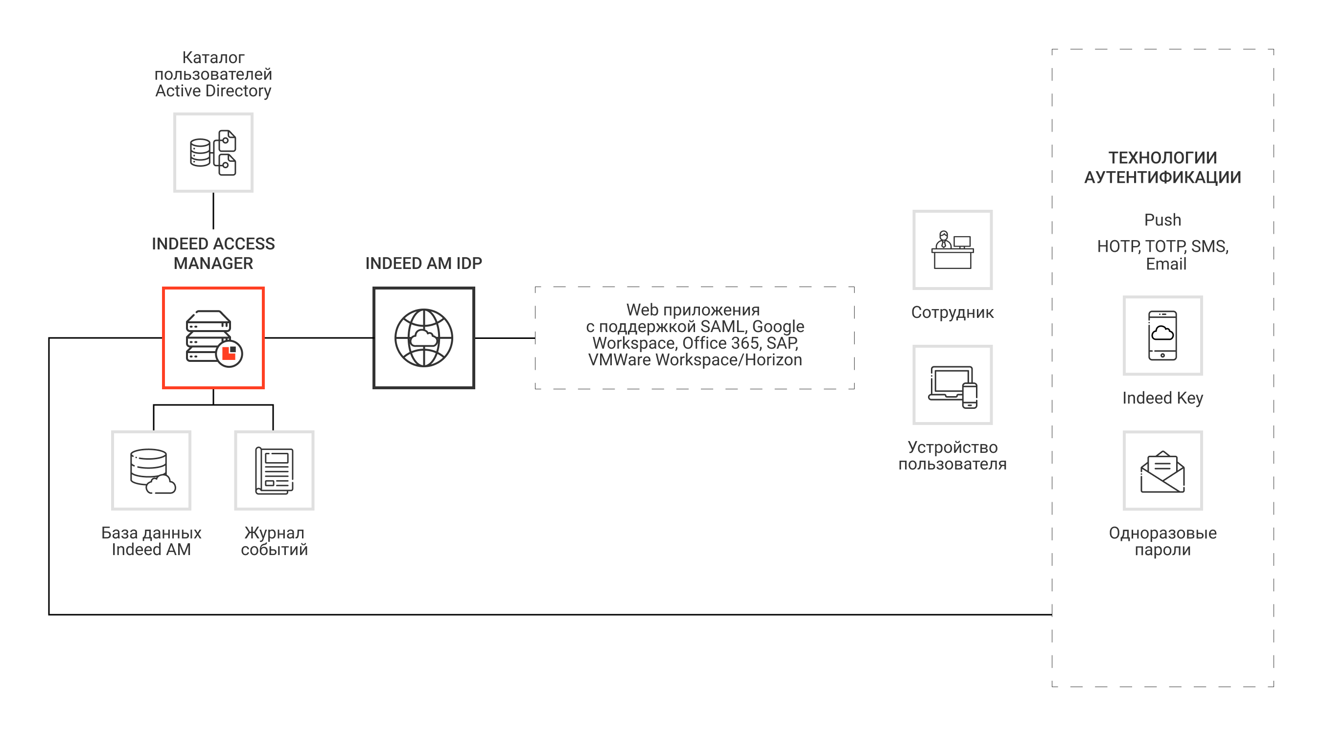 Indeed IDP поддерживает следующие технологии аутентификации пользователей: