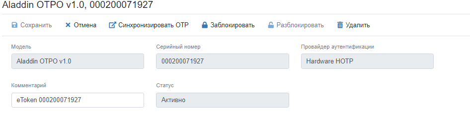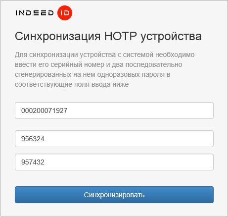 5. В поле Одноразовый пароль 1 и Одноразовый пароль 2 укажите пароли с устройства и нажмите Синхронизировать.