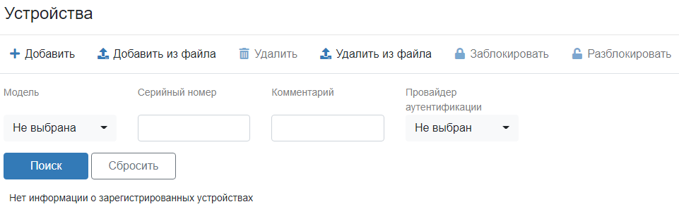 Вы можете добавить устройство, выбрав файл с параметрами устройства (Добавить из файла), либо указать параметры вручную (Добавить).