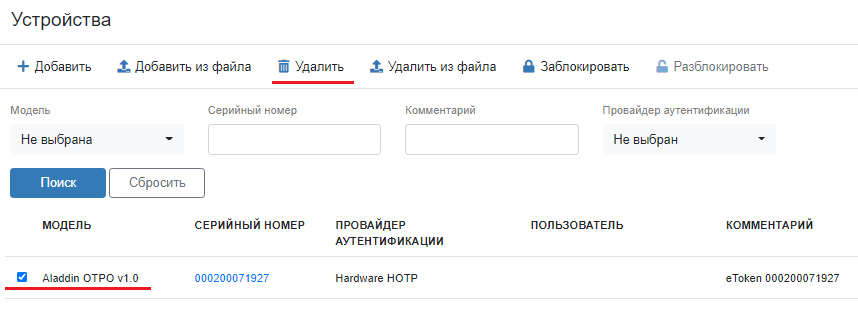 1. Для удаления устройства по информации из файла нажмите Удалить из файла.