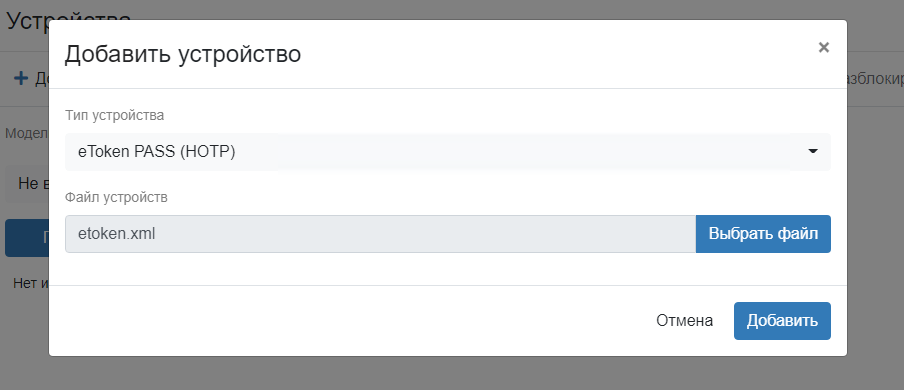 2. Выберите файл формата XML с параметрами устройства и нажмите Добавить.