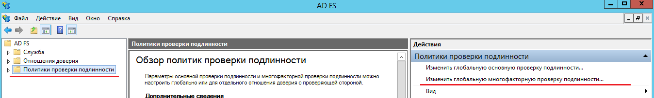 3. В окне Действия выберите Изменить глобальную многофакторную проверку подлинности....