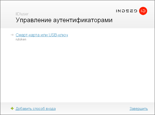 2. Выполните необходимые действия, следуя подсказкам в окне Управление аутентификаторами. Внешний вид окна и действия зависят от выбранного способа аутентификации.