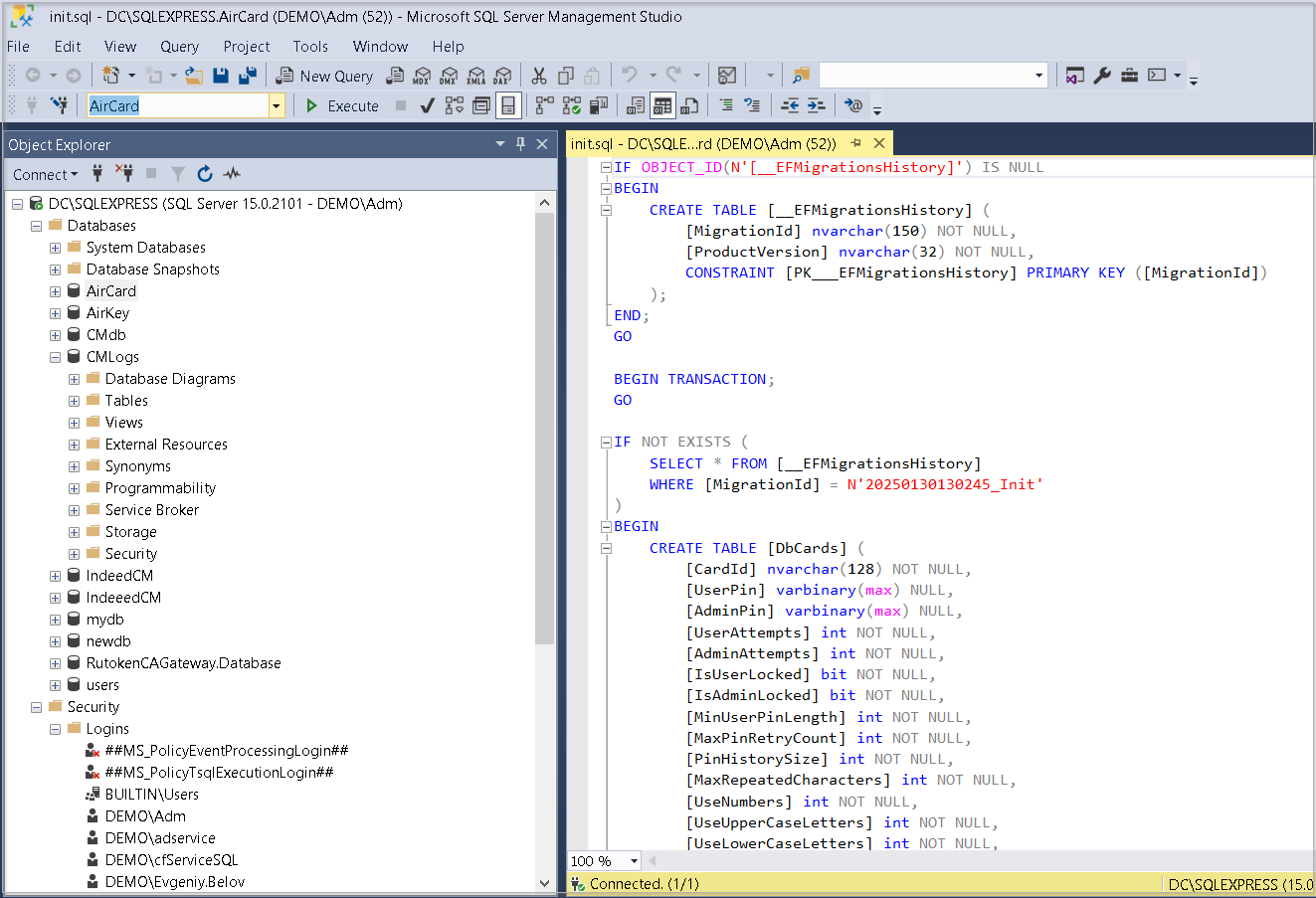Выберите в Обозревателе объектов (Object Explorer) созданную базу данных и выполните скрипт init.sql: