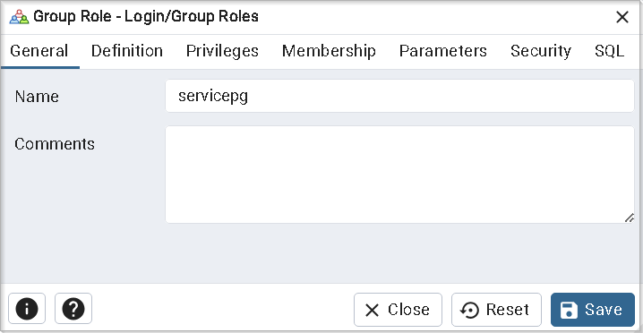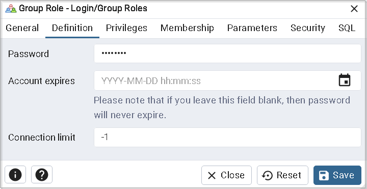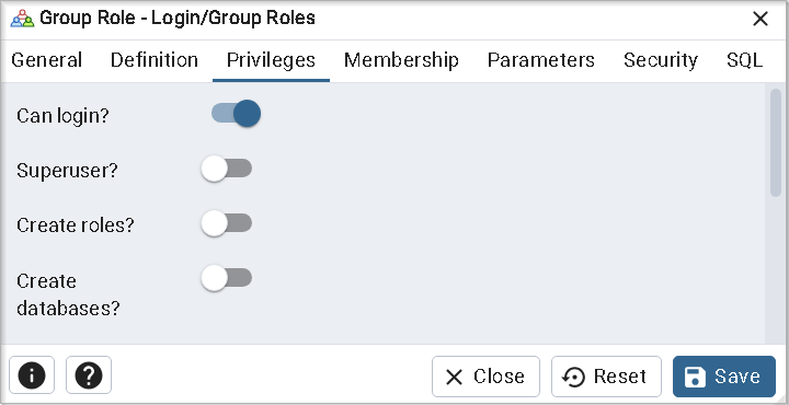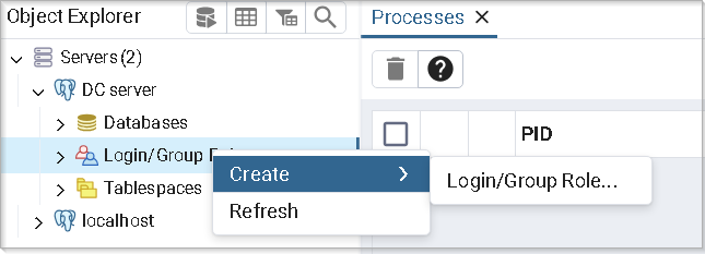 Выберите Создать→Роль входа/группы (Create→Login/Group Role…).