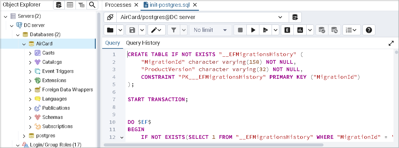 Выберите в Обозревателе (Object Explorer) созданную базу данных и выполните скрипт init-postgre.sql: