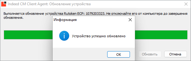 После успешного завершения обновления отобразится соответствующее сообщение.