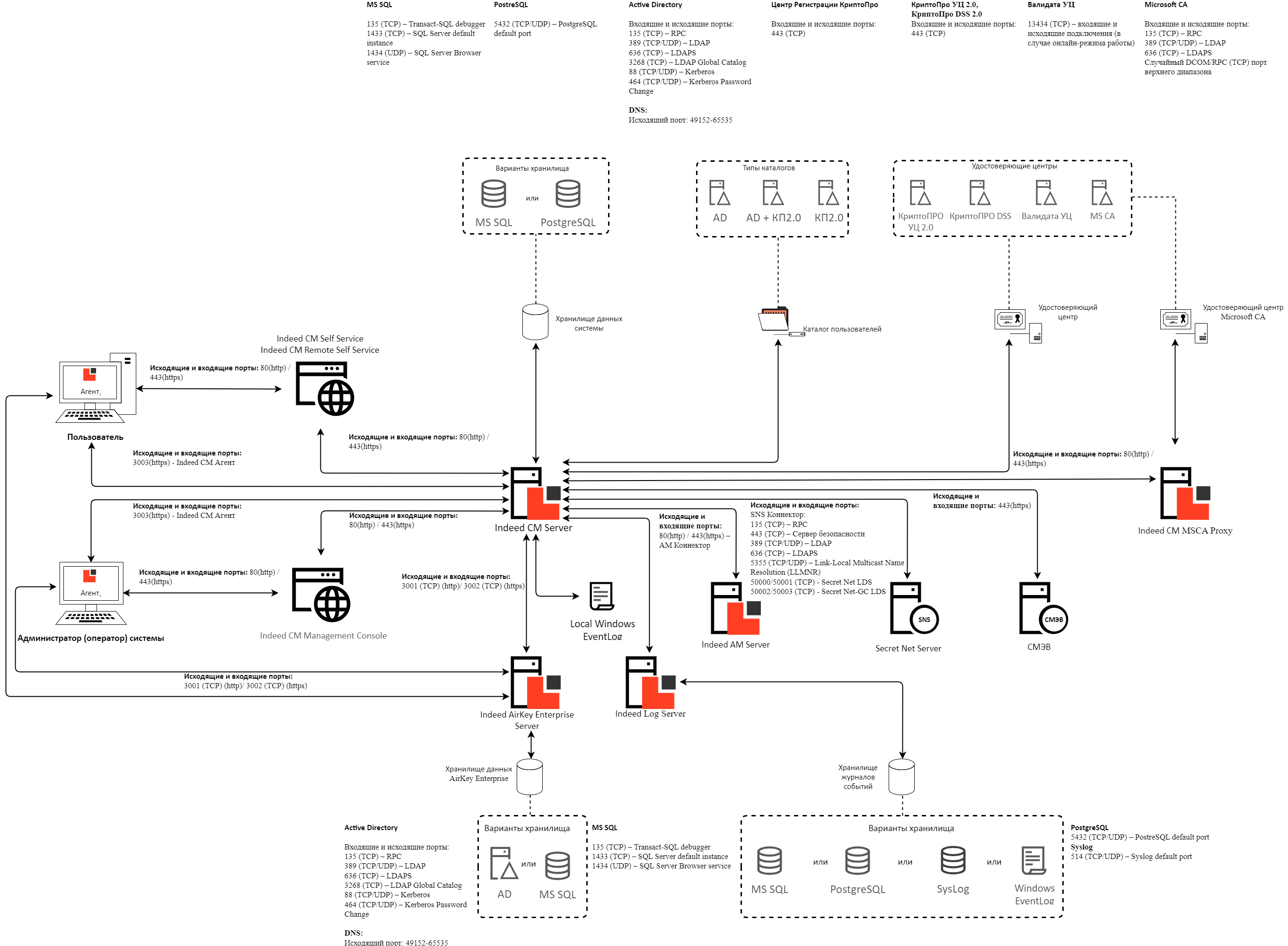 - 3003 (TCP) для Indeed CM Agent.