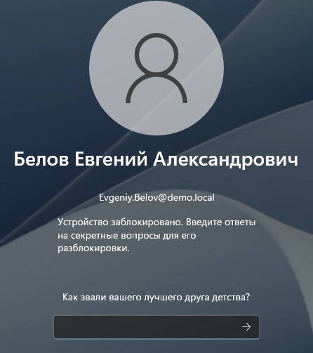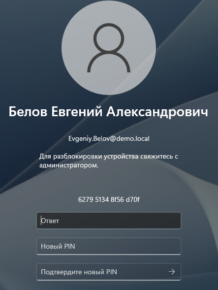 Пример экрана офлайн-разблокировки устройства в окне входа ОС Windows 11