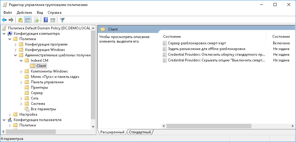 Для включения возможности онлайн-разблокировки устройств настройте соответствующую групповую политику. Эта политика должна распространяться на рабочие станции пользователей Indeed CM.