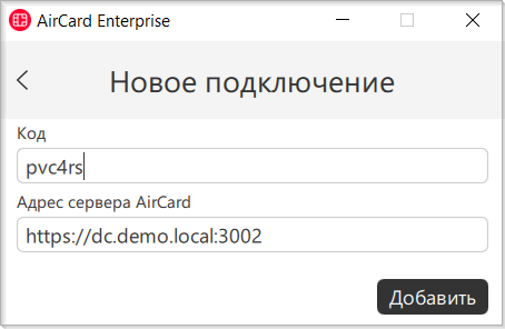 - В поле Код введите код, полученный от администратора. Код действителен в течение часа, его можно использовать только один раз. Адрес сервера Indeed AirCard Enterprise подставляется автоматически.