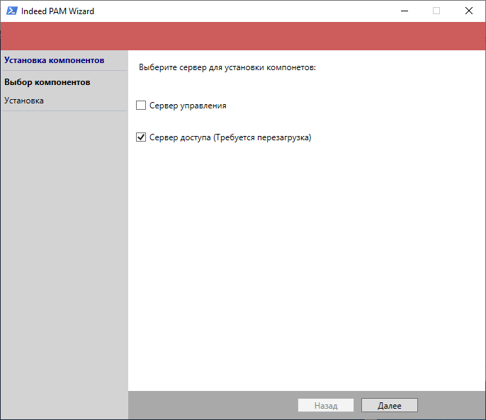 В окне Выбор компонентов выберите Сервер Доступа и нажмите Далее.