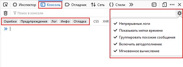 - Во вкладке Консоль нажмите
