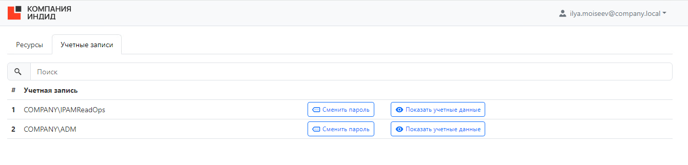 Поиск учетных записей работает аналогично поиску ресурсов.