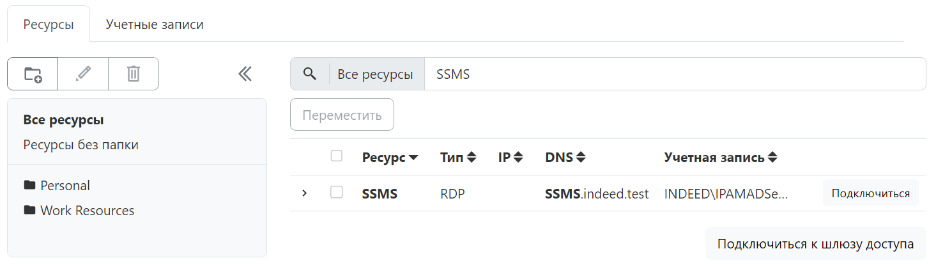Раздел предназначен для работы с личными папками ресурсов пользователей.
