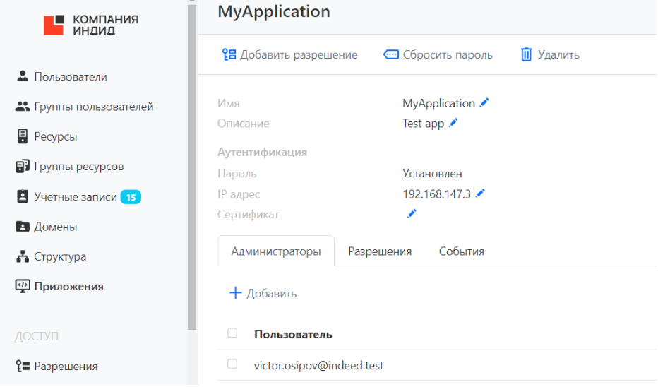 1. Статичный пароль — задается автоматически при создании приложения. Администратор PAM может сбросить через MC, но не может посмотреть. Пользователь PAM, являющийся администратором конкретного приложения, может посмотреть пароль этого приложения в UC.