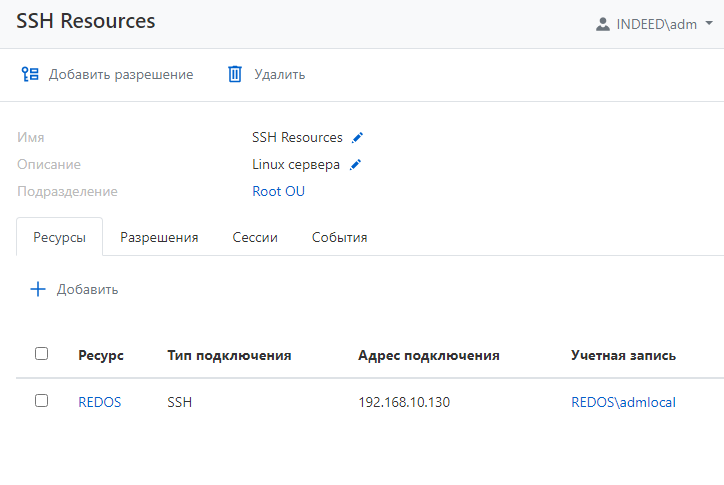 Так как разрешение создается на всю группу, пользователю становятся доступны сразу все ресурсы группы. При изменении состава группы ресурсов у пользователя в рамках разрешения также изменится состав доступных для подключения ресурсов.