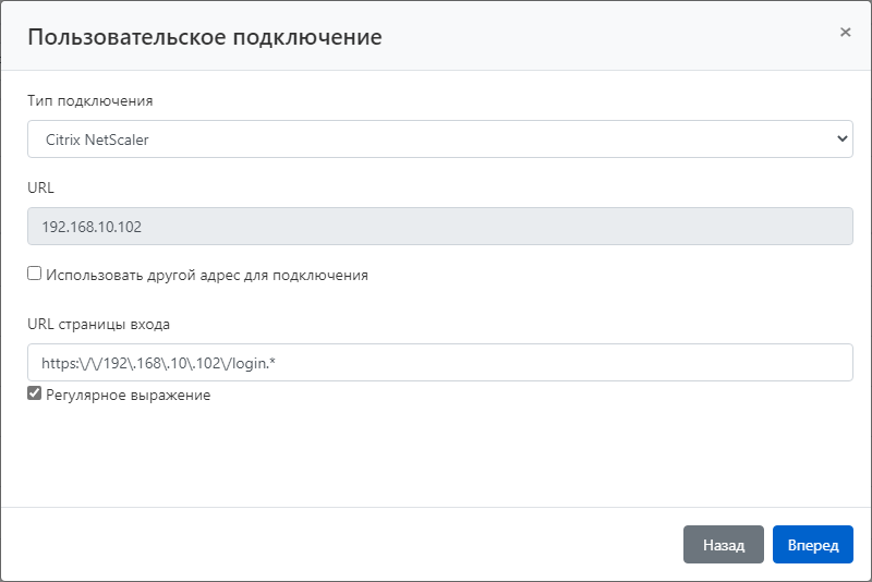 - Выберите Тип подключения — Citrix NetScaler.