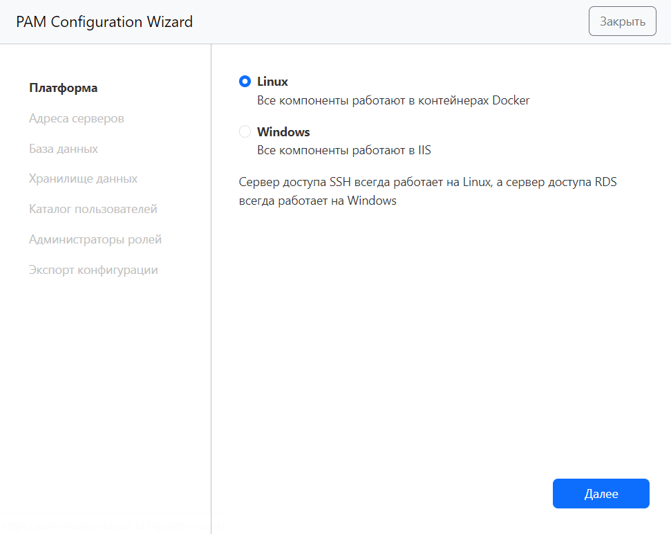 Выберите ОС, на которую планируется установка и нажмите Далее.