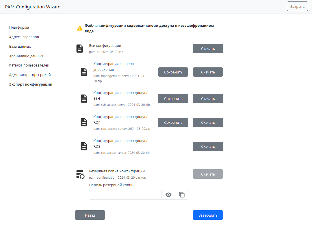 Скачайте необходимые файлы конфигурации и нажмите Завершить.