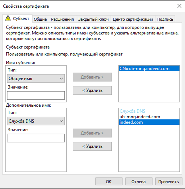 - Subject: Common name — <DNS сервера управления>