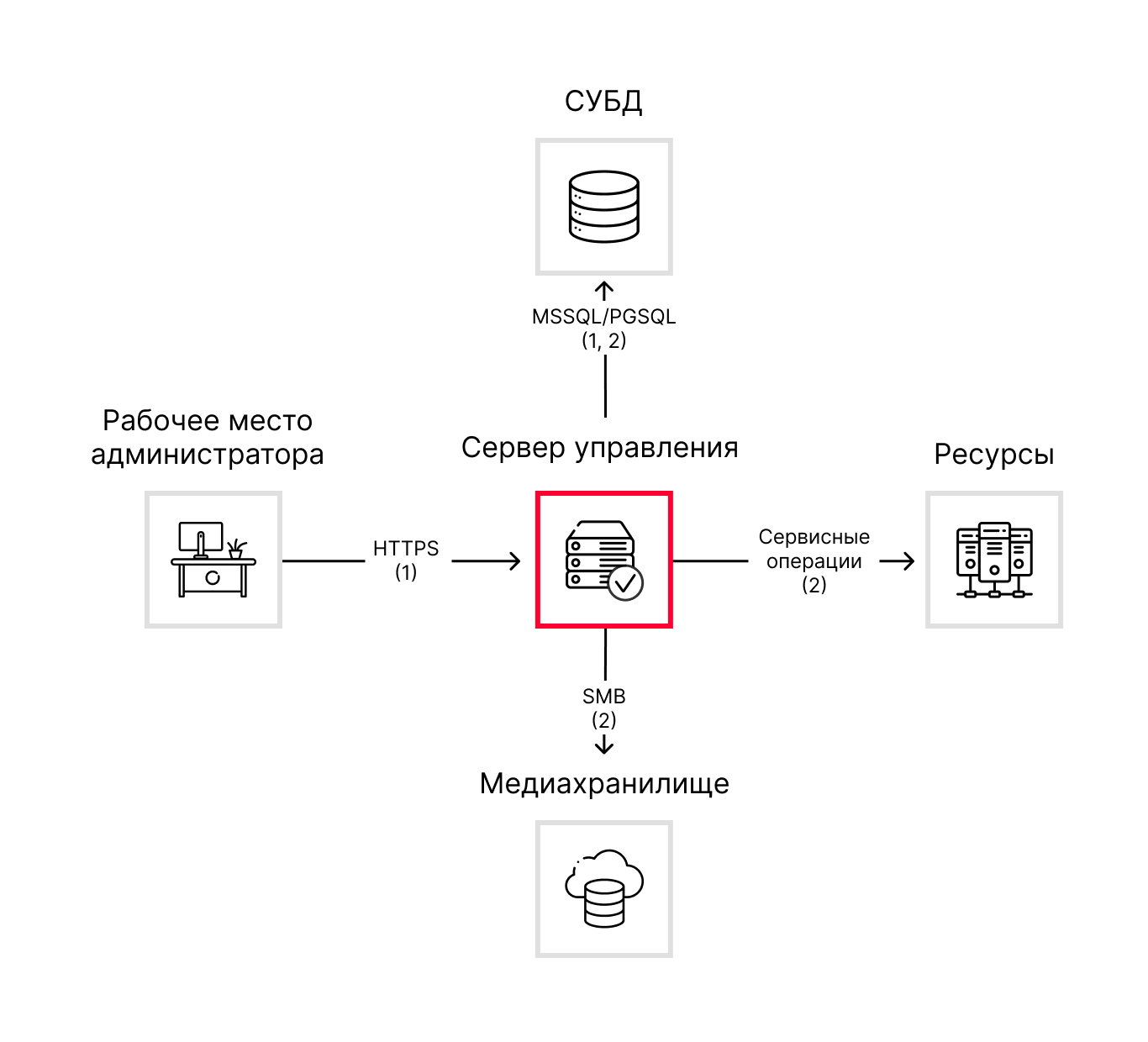 - Доменная аутентификация и предоставление второго фактора. Проверка пользователя в БД IdP. Проверка разрешения на доступ в БД Core. Извлечение из СУБД логина и пароля сервисной учетной записи для работы с медиахранилищем. Извлечение из СУБД логина и пароля привилегированной учетной записи для подключения к ресурсу.