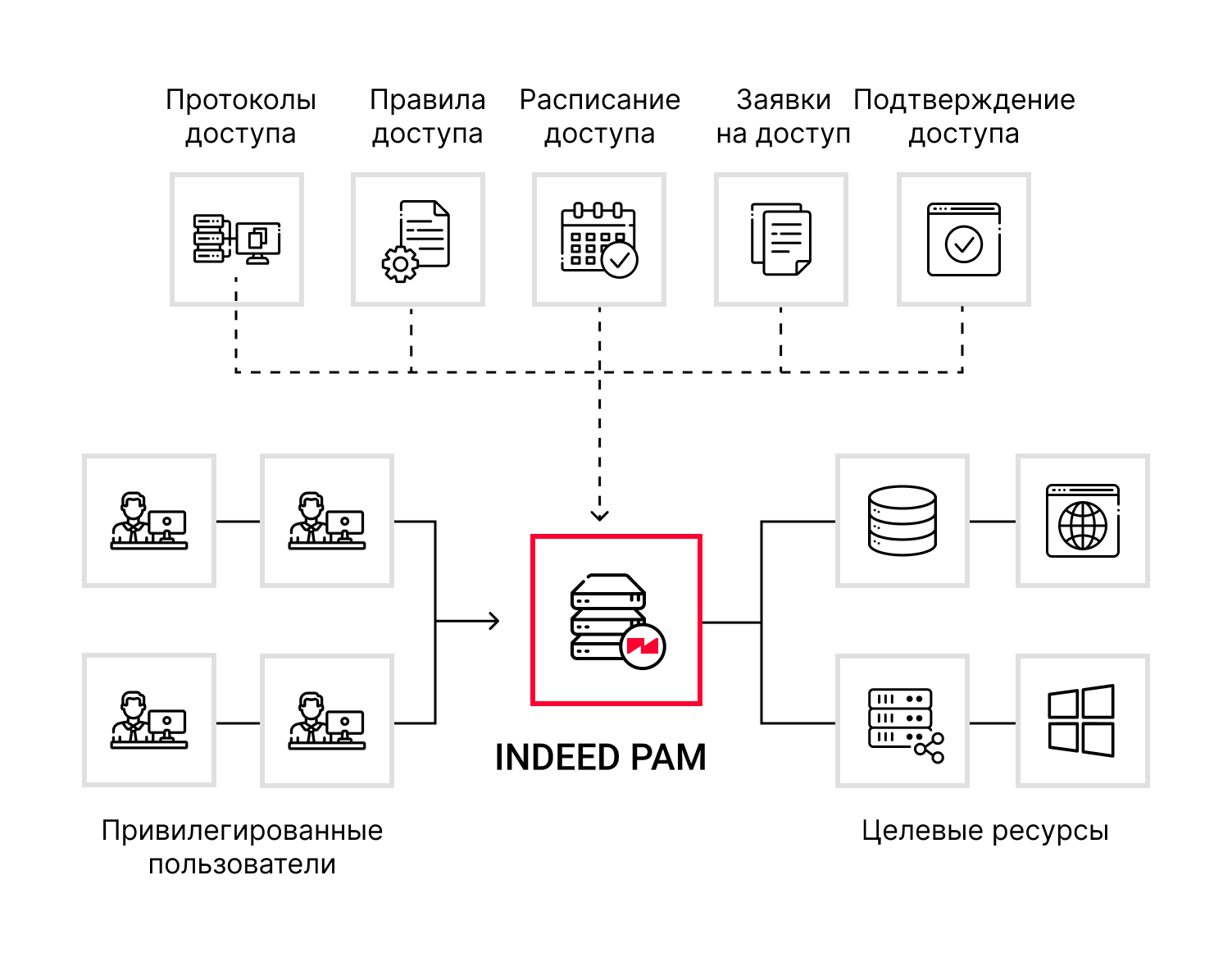 Программный комплекс Indeed Privileged Access Manager (Indeed PAM) — продукт для управления доступом привилегированных пользователей к ИТ-системам компании.