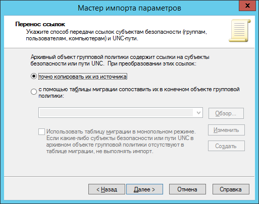 6. В окне «Перенос ссылок» включите опцию «точно копировать их из источника».