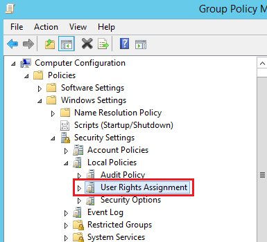 (англ. — Computer ConfigurationPoliciesWindows SettingsSecurity SettingsLocal PoliciesUser Rights Assignment)